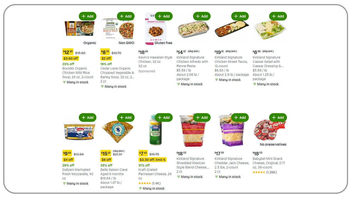Basket composition analysis shows that modern shoppers often blend premium and value items in a single order. Rather than committing to one pricing tier, consumers selectively upgrade or downgrade based on perceived importance. For example, organic produce may be paired with private-label pantry staples, reflecting conscious budget allocation rather than reduced spending overall.