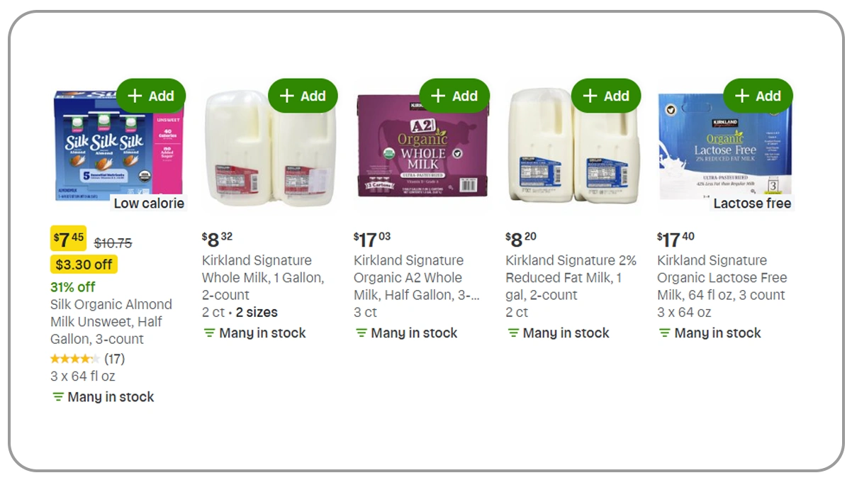 Analysis of digital shelf behavior shows that essential items such as milk, bread, and packaged staples experience immediate elasticity. A small price increase often leads shoppers to select smaller pack sizes or shift to store brands. In contrast, specialty or premium products demonstrate lower sensitivity, especially when supported by strong reviews or perceived quality.